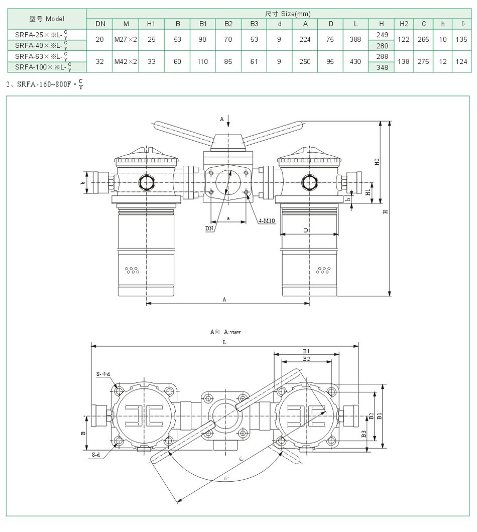 SRFA系列回油過濾器是有兩只單筒過濾器,換向閥,旁通閥,擴散器等組成,它被安裝在油箱的頂部,可在系SRFA雙筒微型直回式回油過濾器被安裝在油箱的頂部,可在系統不停機的情況下更換濾芯,適用于連續工作的液壓系統回油精過濾,用來濾除液壓系統中諸元件磨損產生的金屬粉末以及密封件的橡膠雜質,使流回油箱的油液保持清潔,以利于系統中的油液循環。